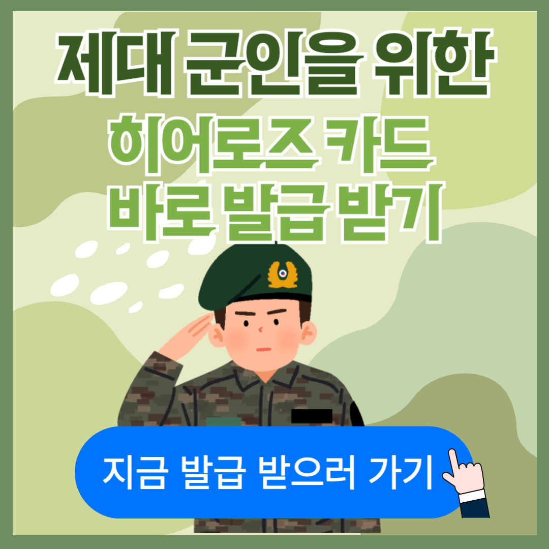 국가보훈부와 ibk기업은행, NH농협카드, KB국민카드가 함께 청년 제대군인들을 위한 히어로즈 카드를 만들었습니다. 지금 바로 내가 대상인지 확인해 보고 밑에 있는 버튼 클릭하고 바로 발급받아보세요.